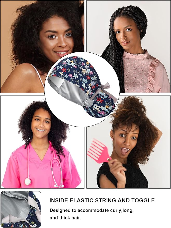 - Truly Outstanding Quality: crafted from a blend of cotton and satin cloth, our nurse scrub caps flaunt notch quality! The cotton layer keeps the cap breathable while the satin lining aids in well sweat absorption; Enjoy a grease free hair experience with this lightweight cap, offering comfort without adding any more weight to your head