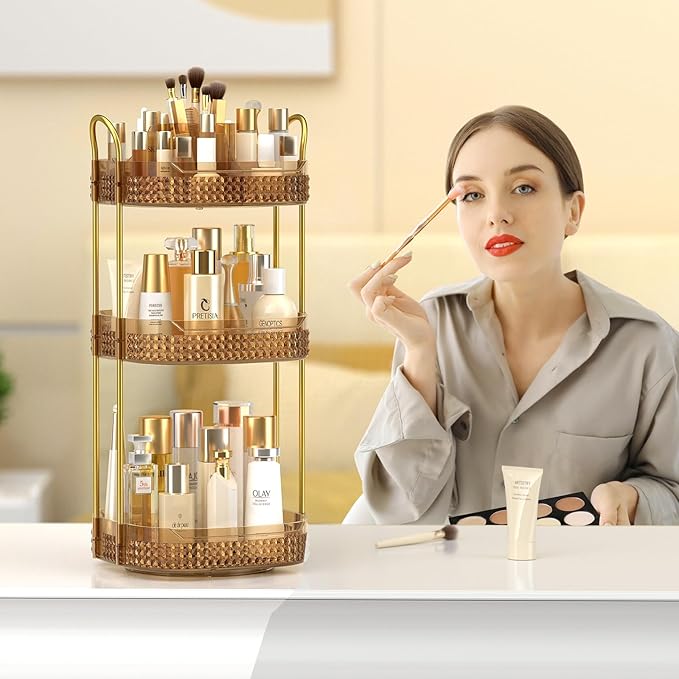- Spinning Organizer: Truly find items in a second with the 360 rotating makeup organizer, all you have to do is turn it around and the items on the inside are easily accessible. Gentle and stable turntable, no need to worry about the cosmetics being knocked over while spinning