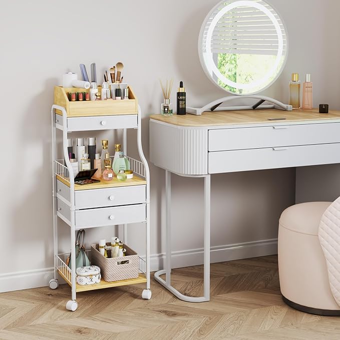 - [Safety Railing Design]: Our makeup cart with wheels are also designed with railings to prevent your items from easily falling off. Safety railings help organize items on the beauty organizer and prevent them from moving or tipping over, reducing the risk of accidents or damage