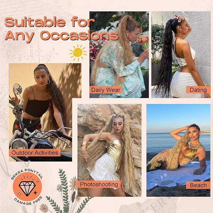 - đź’–Longer Thicker and Lighter - Our SEIKEA 26 inch long curly drawstring ponytail crafted from Sklafiue Imported Hair, which makes the hair strands light, soft, and also fluffy effect. Feels like, looks like, and wears like real human hair. Length: 26 inch/66cm, Weight: 140g/4.9oz.