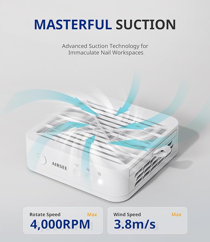 - Powerful Suction: This nail duster adopts air booster technology, equipped with a 4000 RPM motor and 400 PA suction, which increases the dust collection efficiency by 40% and achieves a 100% vacuum environment. Have fun creating in a cleaner, safer space