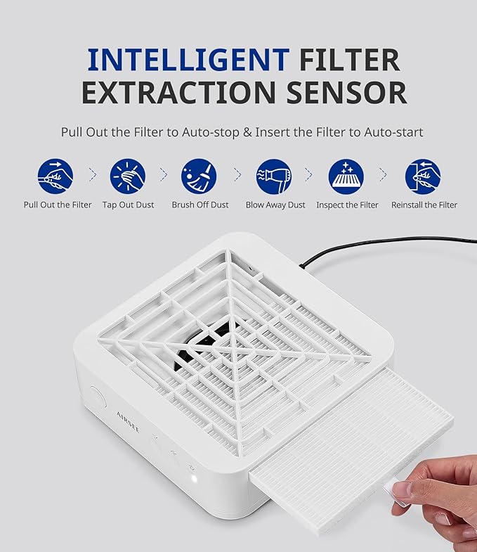 AIRSEE GD3 Nail Dust Collector for Salon and Home Use,Powerful and Quiet Manicure Vacuum for Acrylic Gel Nail Polishing with Reusable Filter,3-Speed Adjustable Extractor Fan,White