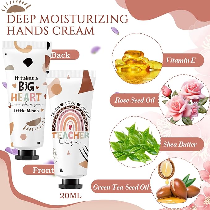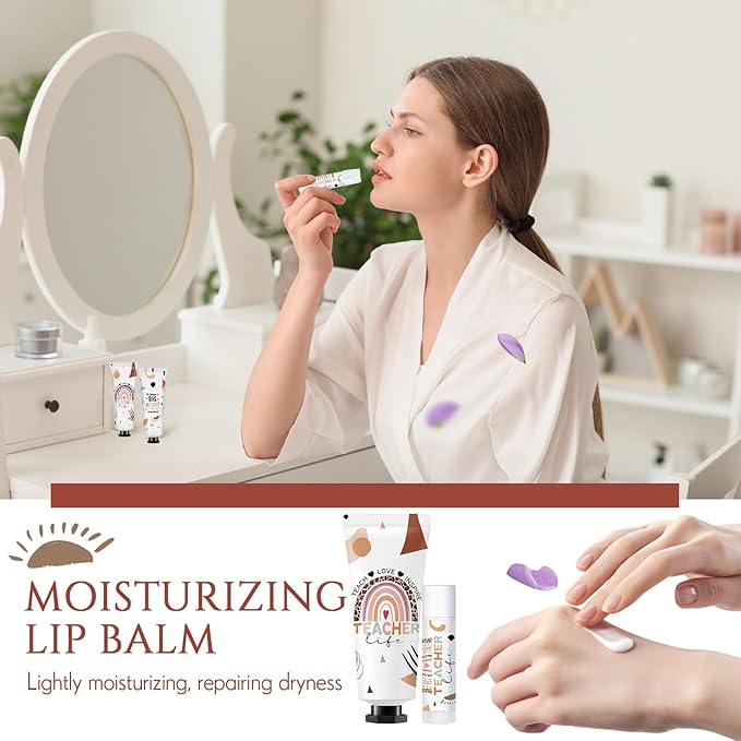 - Practical Contents: the lip balm and hand cream set is not just thoughtful, but practical; With a generous 20 ml of hand cream and 4.5 g of lip balm in each set, these are sure to provide lasting skin relief and lip care, bringing lasting satisfaction to beloved teachers