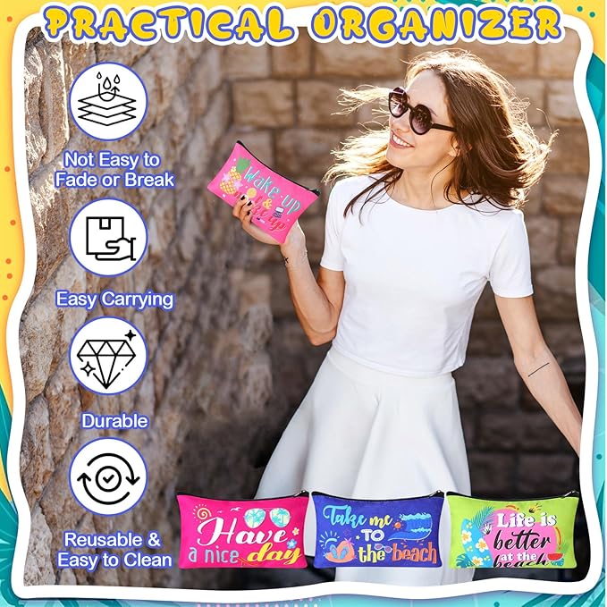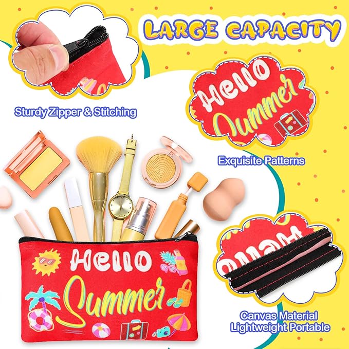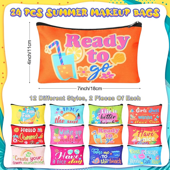 - Rich in Quantity: you will receive 24 pieces of summer makeup bag in 12 different styles, 2 pieces of each style, enough quantity to meet your needs and replacements, suitable for gifting or taking along on your travels