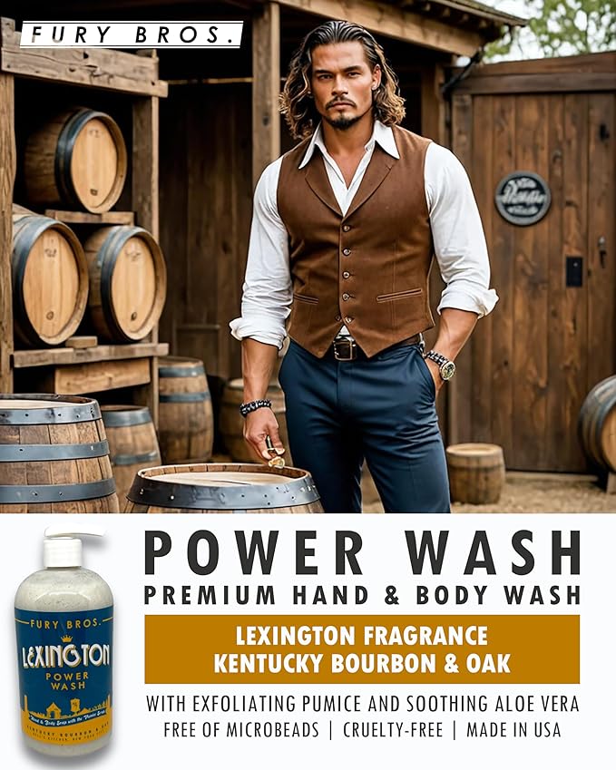 - UNLEASH YOUR INNER MAN: Say goodbye to floral and cupcake scents—step out of the shower like the rugged man you are. Infused with powerful fragrances like gunpowder, leather, and campfire, Fury Bros. Power Wash is made from all-natural ingredients to cleanse and invigorate your skin without harsh chemicals. Enjoy long-lasting freshness with a robust scent that lasts all day. Proudly crafted in the USA, this premium hand & body wash reflects strength, confidence, and rugged charm. Ideal for any man who appreciates strong, masculine scents and a no-nonsense approach to grooming.