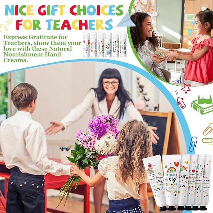- Product List: our Teacher's Day gift set contains 48 pieces of teacher hand cream, 48 pieces of teacher appreciation lipsticks, 48 cards, 48 white organza bags, and a 32.8-foot long rope; The products are rich in variety and quantity to meet your daily use and sharing needs