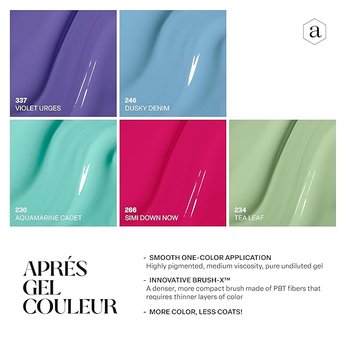 Apres Gel Couleur Combo Set, 5 Color Gel Nail Polish, Bright Nude Pastel Colors with Brush-X Nail Art Brush, 2024 Edition (Set 9)