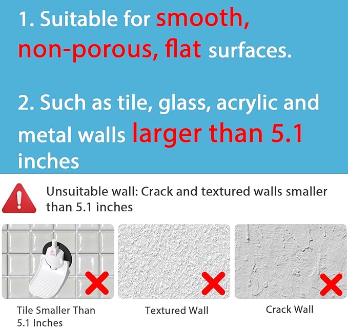 - 【 Important Note 1: Smooth and Non-porous Flat 】 The suction cup foot rest only suitable for smooth and non-porous flat, like tile, marble, glass, wardrobe, metal surfaces, which surface larger than 5.1 inches.