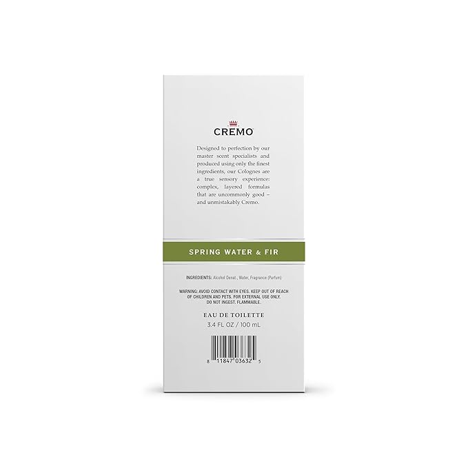 Cremo Spring Water Fir Cologne Spray, A Refreshing, Clean Scent with Notes of Spring Water, Cool Moss and Balsam Fir, 3.4 Fl Oz