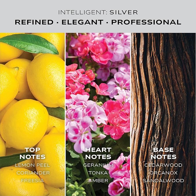 - REFINED AND ELEGANT OPENING: Intelligent Silver starts with a crisp, refined freshness that sets the tone for an incredible day. Designed to embody professionalism and polish, this scent is all about making a strong, yet subtle impression on everyone you come into contact with. Whether you’re stepping into a meeting or heading out for the evening, Silver’s opening gives you that confident, collected edge, perfect for any formal or office setting.