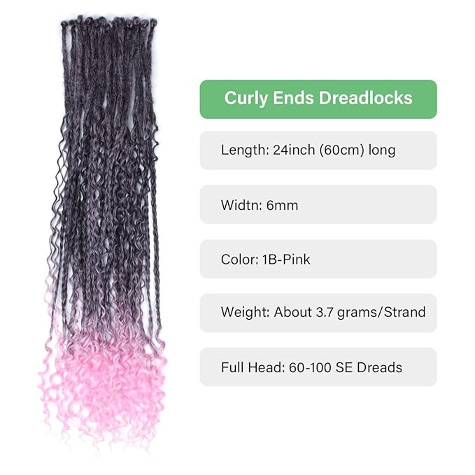 Single Dreadlock Extensions,24 Inch 30Stands Natural Black to Pink Dreads Set Synthetic Boho Braids Curly Hippie Style Dreads Handmade Dreads(24Inch Boho-30Stands,1B/Pink)