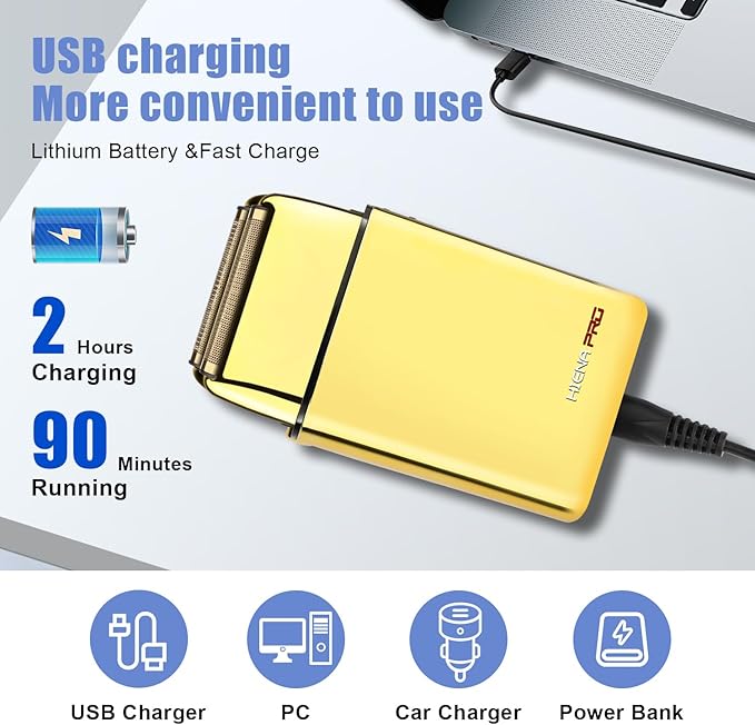 - 【USB Multiple Charging Choices】Enjoy the convenience of various charging options, ensuring you never run out of power. You can charge our electric foil shaver by PC, Car Charger, or even a Power Bank with our USB charging cable at any place you wish.