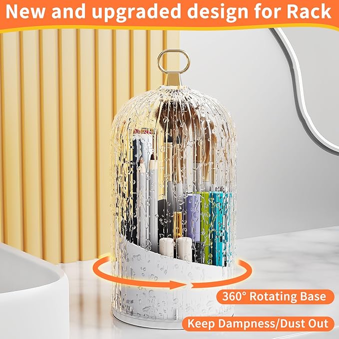 - 360 Rotating Dustproof Makeup Brushes: 360°rotatable base, switchable to your favorite angle for easy use and good-looking placement,The makeup brush organizer has enough space to hold your different brush sizes.clear cover, no dust will fall on your brushes and no makeup powder will fly arou