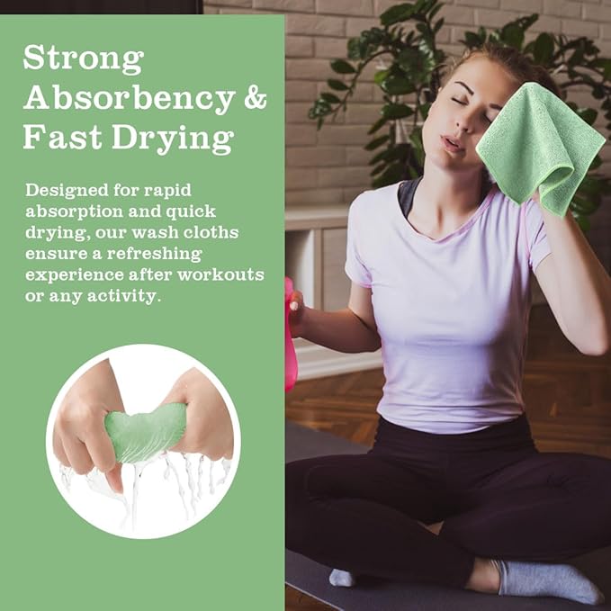 - Excellent User Experience: The 12-inch square size is perfect for daily use, offering an ideal combination of convenience and efficiency. These towels are exceptionally absorbent, quickly soaking up moisture to keep you dry. Despite their high absorbency, they remain lightweight and breathable, ensuring they dry rapidly. This quick-drying property minimizes the time the towels stay damp and maintains hygiene