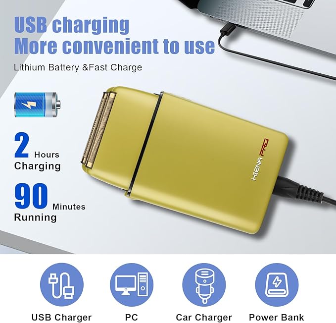 - 【USB Multiple Charging Choices】Enjoy the convenience of various charging options, ensuring you never run out of power. You can charge our electric foil shaver by PC, Car Charger, or even a Power Bank with our USB charging cable at any place you wish.