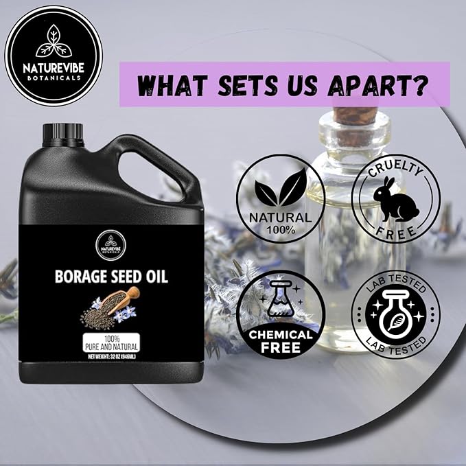- ✅Naturevibe Botanicals Borage Seed Oil 32 Ounces 100% Pure and Natural Unrefined and Hexane-Free | Nourishes Skin and Hair | Suitable for all Skin Types (946 ml)