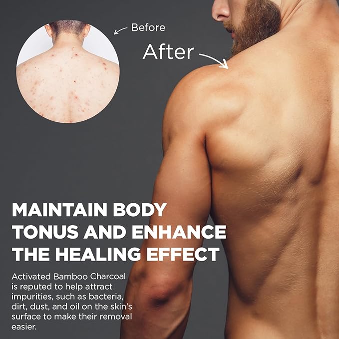 - One of the components in Back Scrubber is deodorizing Bamboo Charcoal. Activated Bamboo Charcoal is reputed to help remove impurities, dirt, dust, and oil, on the skin's surface to make their removal easier.