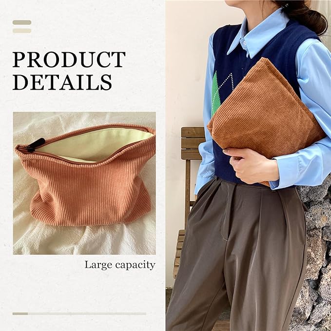 - Large capacity: Our corduroy makeup bags size are about 10.24 x 7.07 x 1.97 inches/ 26 x 18 x 5 cm. It brings convenience for you to travel or storage. You can easily put this travel makeup organizer toiletry bag in your handbags, wallets or backpacks for your carrying.