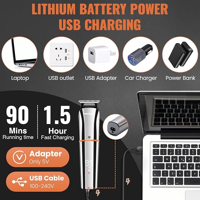 - 【LED DISPLAY, USB CHARGING& TRAVEL LOCK】- Up to about 90 minutes of shaving time by only about 90 minutes charging. The Beard trimmer is equipped with a high definition LED display for showing the amount of power left in the trimmer, which reminds you to charge.(The maximum number for battery level display on the device is 99) Travel lock (press and hold the POWER button for three seconds)