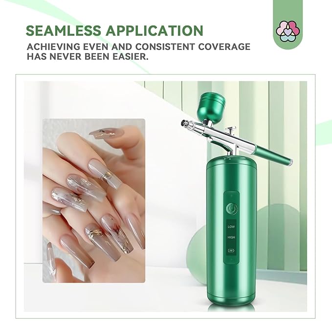 - 💝Fine Mist Spray and Easy Operation: Saviland nail airbrush machine produces a delicate mist spray, It is specifically designed for nail art, providing professional results with minimal effort. The airbrush features a 0.3 mm nano nozzle, ensuring smooth and even application while being incredibly easy to use. The nozzle allows for adjustable atomization, ensuring high-definition spray without visible particles, giving your nail art a professional finish.