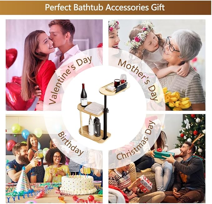 - 【Perfect Bathtub Accessories Gift】This bath tub tray is suitable for home spa and hot tub.Enjoy a luxurious bathtub soak and relax in the tub with wine,snacks and movie on a tub side shelf.A creative gift for friends and family during birthday,Valentine's Day,Mother's Day,Thanksgiving and Christmas.