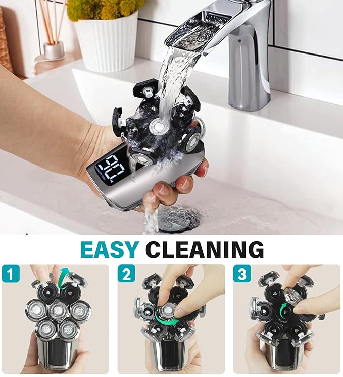 - 【IPX7 Waterproof Design】The head shavers for bald men supports wet and dry shaving and can be used with shaving cream, foam, etc. With Gisaae shavers, you never have to worry about using them in the bathroom. You can even use the razor to shave in the shower. Not only that, our shaver is easy to clean, the head is detachable, and each blade can be rinsed directly under the tap after opening, making it easy to clean and maintain.