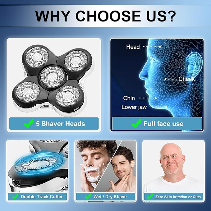 - 👍You can replace the shaving heads in minutes. Place a small drop of oil on each head and perform the shaver for 10 seconds after installation to ensure the shaver works properly and smoothly.