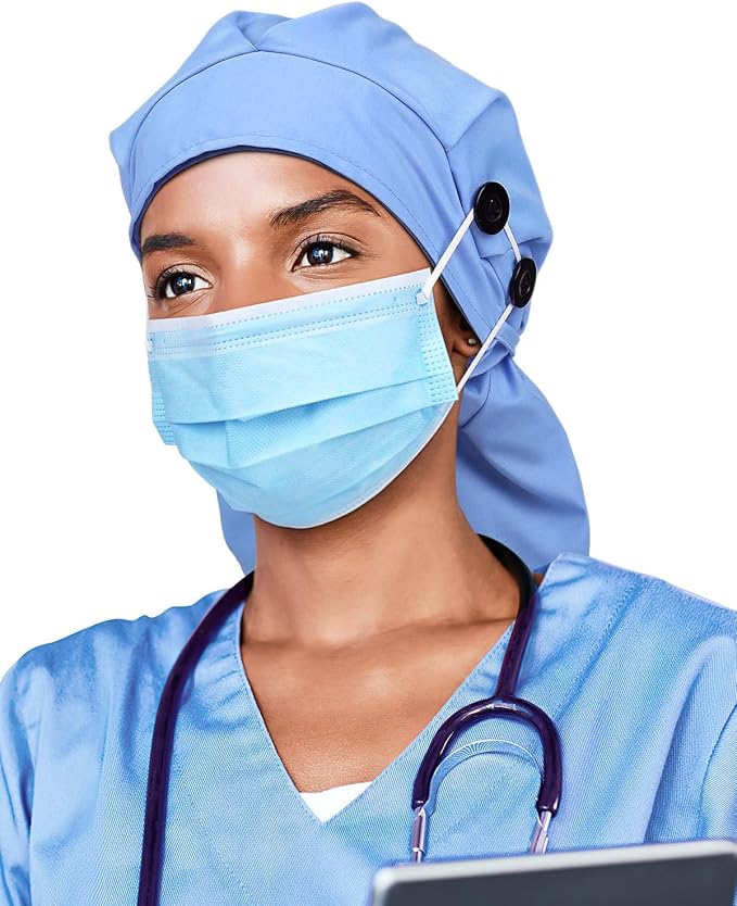 • Adjustable Elastic Band with Ponytail Pouch Design -- the ponytail pouch helps you adjust your hair,makes you look professional and brisk.Ribbons over the pony-pouch provide extra security for keeping hair in place,maintain your hairstyle during work and keep your head clean&neat.Bouffant cap for long hair fit Large or Small Head, more adorable to wear. They are natural, breathable and very comfortable to wear all day;Keeps your forehead dry and comfortable