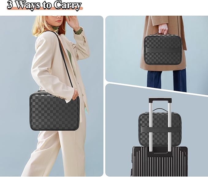- 【New Design and Upgrades】Vanity case is equipped with a smooth water-drop zipper for effortless opening. The handle has been upgraded to a circular design that aligns with ergonomics, reducing pulling pressure. To cater to your travel needs, we've added a luggage elastic band for easy attachment to your suitcase. Additionally, we've included a shoulder strap for added convenience, making it even easier to carry on the go.