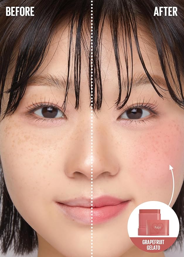 KAJA Cheek & Lip - Dewy Bar 06 Grapefruit Gelato | Creamy Blusher and Balm Multi-Stick, 45% Moisturizing Oil, Apple Extract, Vitamin-Hyaluronic Acid Infused, High Shine, Mother's Day, 10g