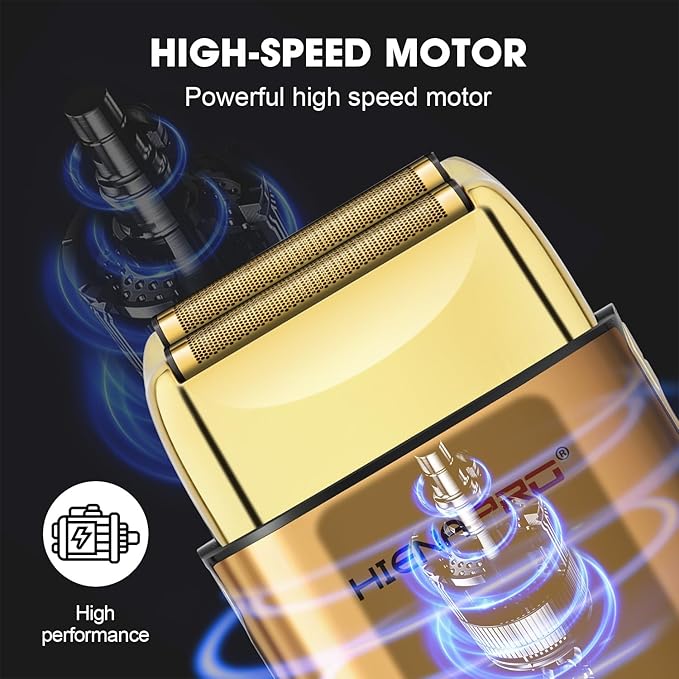Foil Shaver for Men Barber, Double Electric Foil Trimmer, Professional Electric Razor, Close Shaver, Cordless Rechargeable with USB, Detachable Design, LED Display, Gold