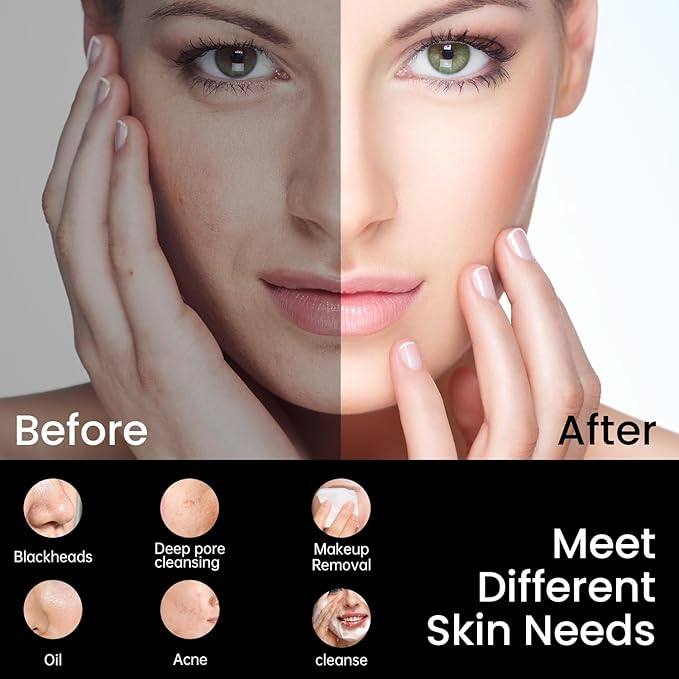 - 【Deep Cleansing, Customizable Cleaning Modes】This advanced electric face scrubber has 5 cleaning modes, allowing you to customize your own cleaning mode based on your skin type to protect delicate facial skin, suitable for all skin types. Due to its excellent sonic vibration technology(up to 14,000 times per minute), it can effectively remove 99% of dirt, oil, and dead skin, and meet various cleansing and skincare needs such as blackhead removal, exfoliation, pore cleansing, making your face look clean, refreshed and radiant.