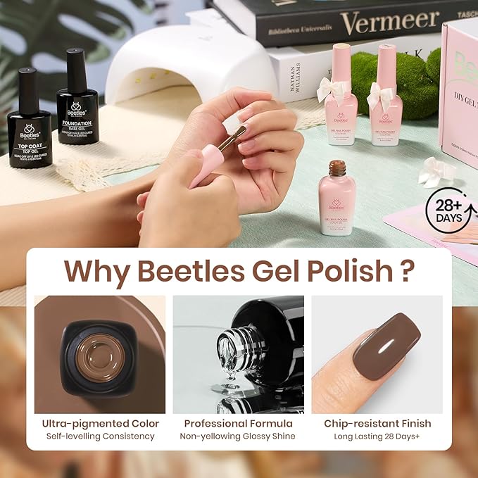 Beetles X DIY Nail, Goddess Revival Gel Nail Polish Kit 5 Color Brown Blue White Uv Gel Polish with 160pcs Nail Tips Golden Gemstone Charms Nail Foil Stickers Nail Decors Manicure Gifts for Girls