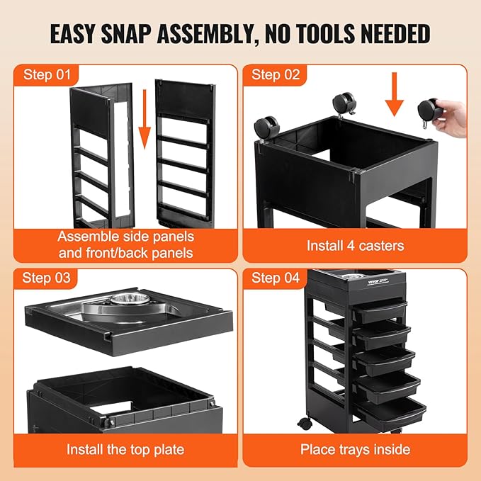 - Excellent Mobility: Whether in tight studio spaces or during busy salon work, the salon rolling cart can be moved easily on various floor surfaces with 4 smooth-rolling 360° swivel wheels. 2 lockable casters ensure the rolling cart remains stable and secure, allowing you to position the salon beauty cart wherever you need. In addition, the 360° rotatable casters will not get tangled by hair.