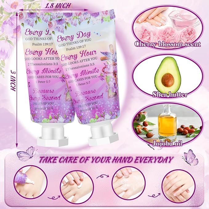 - Christian Hand Cream Gift: our Christian hand cream gift is printed with biblical text and exquisite pattern design, which can bring you a positive mood; This is a cute and attractive gift, an ideal thank you and motivational gift for women, and an ideal choice for Mother's Day, wedding, Valentine's Day, and Christmas gifts