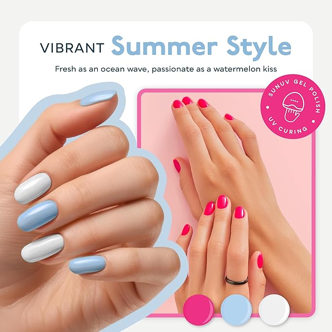 - Hema-Free Formula Gel Nail Polish Set: SUNUV gel polish is specially formulated ,free from harsh chemicals. It's cruelty-free, anti-chipping, low odor, skin-friendly and safe for both home and salon use. Perfect for maintaining healthy, beautiful nails