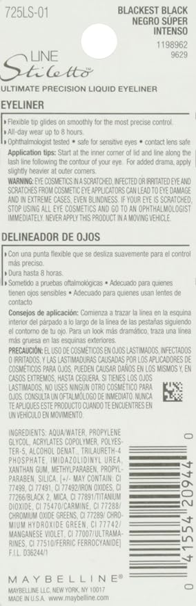 MAYBELLINE New York Line Stiletto Ultimate Precision Liquid Eyeliner, Blackest Black, 0.05 fl. oz. (Pack of 2)