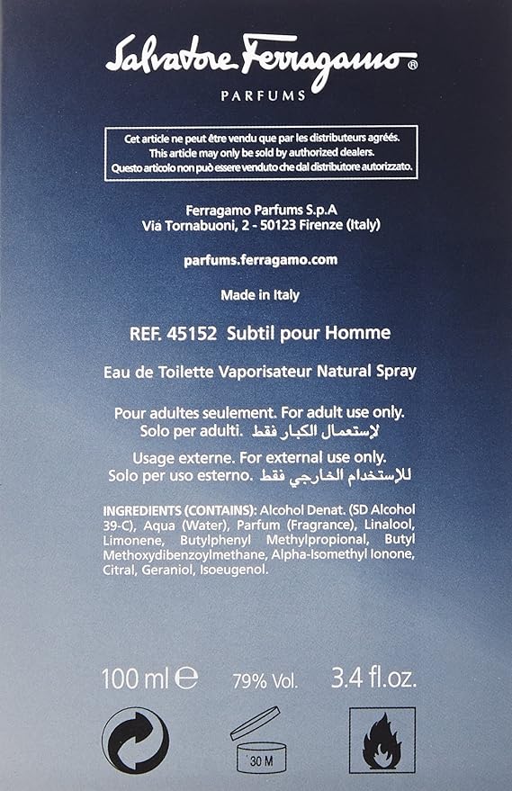 Salvatore Ferragamo Subtil Eau de Toilette Spray for Men, 3.4 Ounce (Pack of 2)