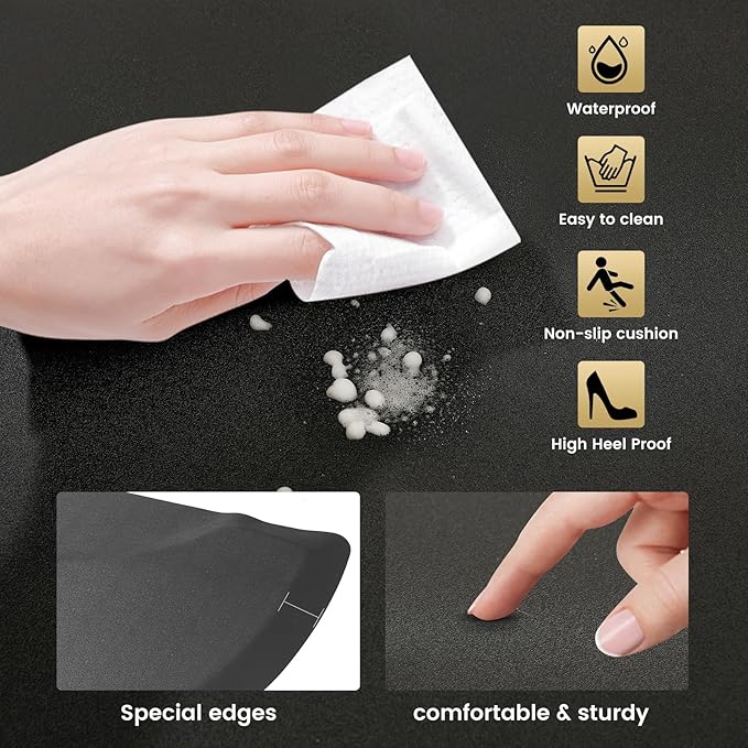 - 【High Heel Proof】And Antifatigue mat also can be used under high heels, The PVC surface is durable and anti fatigue.