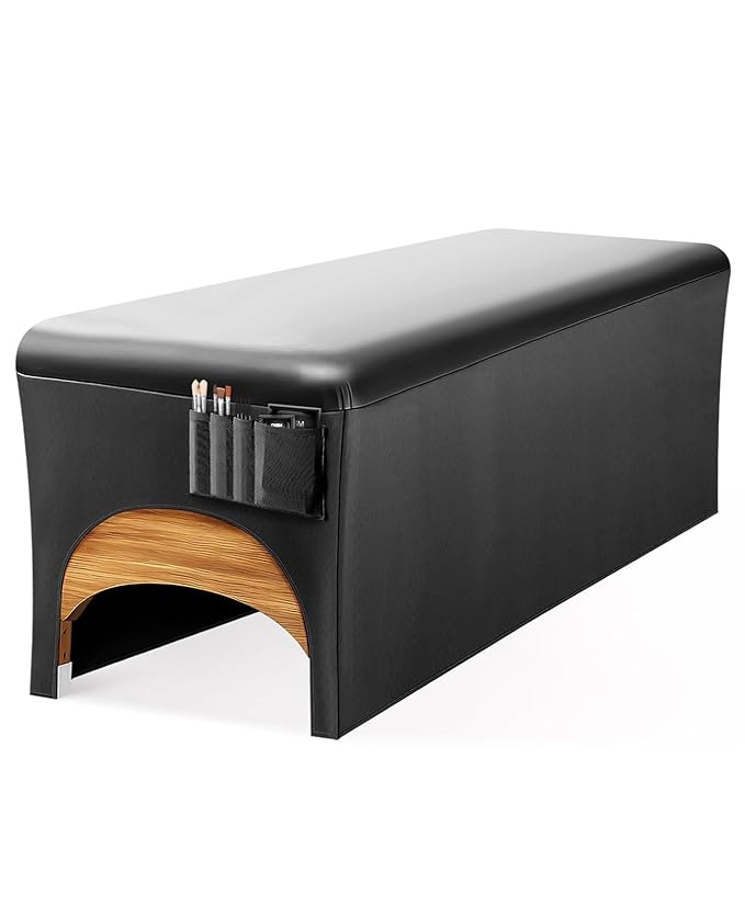 Onism Lash Bed Cover, Wipeable PU Leather Massage Table Cover with Storage Pocket, Waterproof Soft Comfortable Lash Table Cover for Eyelash Extension, Perfect for Salon Spa Tattoo, Black