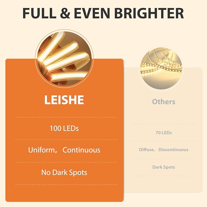 - 【HIGH COLOR RENDERING MAKEUP MIRROR】Leishe Vanity Mirror features a light strip with 100 LED light beads, continuous illumination and no dark spots. Its CRI>90 and 99% natural daylight reproduction ensure accurate color rendering and a flawless makeup look, even in low light.