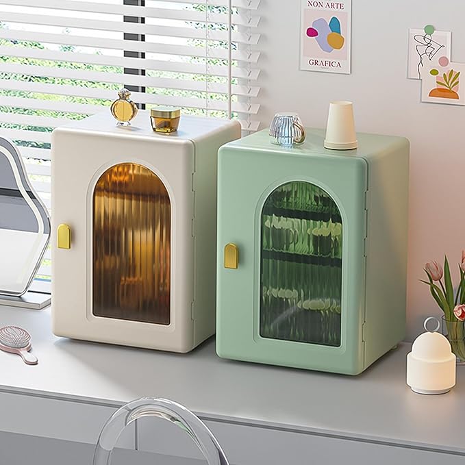- 2. Large Storage Capacity : This cosmetics organizer cabinet is designed with large capacity and partitioned storage, which is very suitable for storing your eye shadow palette, skin care product bottles, lipstick pads, facial creams and other beauty necessities, saving storage space on your dressing table.
