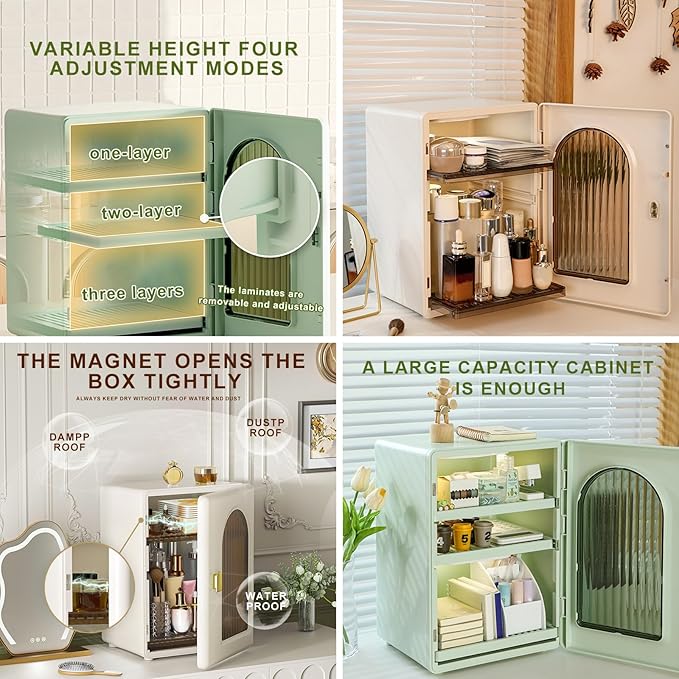 - 3. Magnetic Door Design: The door of the skincare organizers adopts an upgraded magnetic design, which can protect your cosmetics from dust and moisture, ensuring convenient use while also increasing your sense of security.