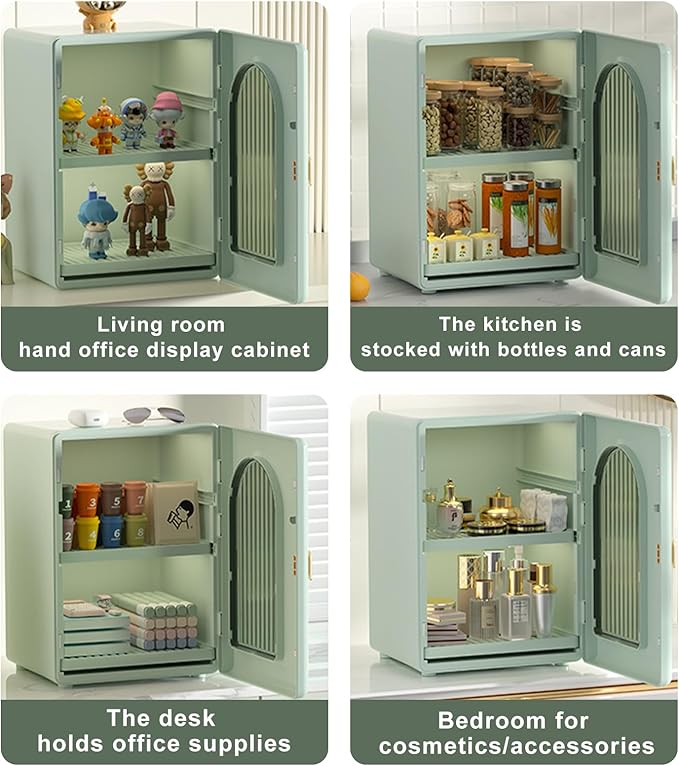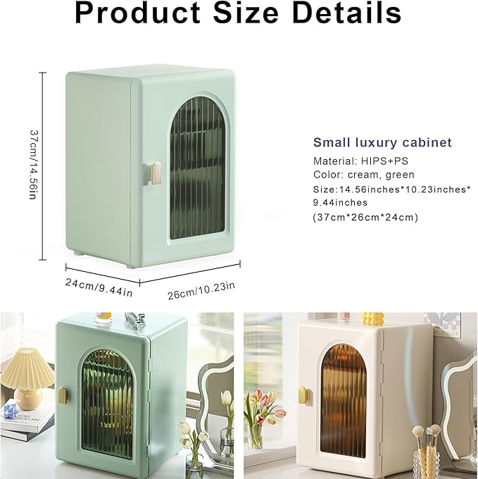 - 2. Large Storage Capacity : This cosmetics organizer cabinet is designed with large capacity and partitioned storage, which is very suitable for storing your eye shadow palette, skin care product bottles, lipstick pads, facial creams and other beauty necessities, saving storage space on your dressing table.