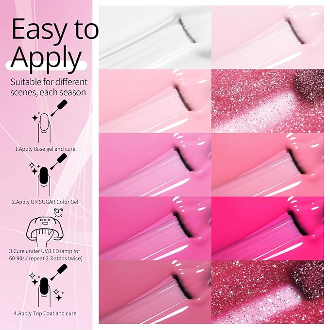 - 【Ideal Gift for Her】 - UR SUGAR pink gel nail polish set comes with a gift box, it will be a nice gift for birthday, party or holidays, like Christmas, New Year, Valentine's Day, Mother's Day, Halloween and Thanksgiving Day , get ready for all seasons !