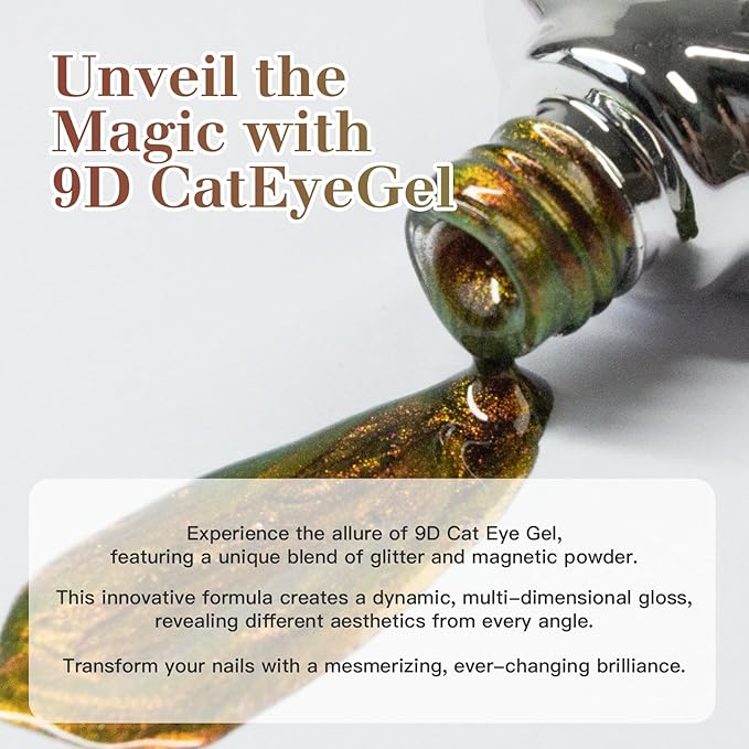 - Long-Lasting Shine: Enjoy vibrant and chip-free nails for up to 28+ days with proper application. Our 9D cat eye gel polish requires curing under an LED/UV lamp for 60-120 seconds, ensuring long-lasting color and shine.