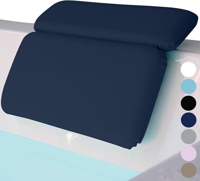 GORILLA GRIP Bath Pillow for Tub, Improved Suction Cups, Luxury Bathtub Pillows, Headrest for Neck and Back Support, Relaxing Home Spa, Hot Tubs and Bathroom Essentials, Gifts for Women, 2 Panel Navy