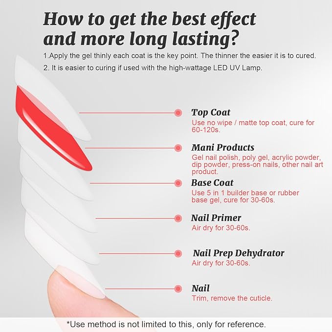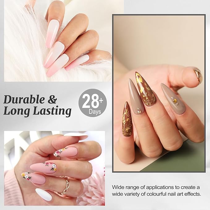 - Long-Lasting & Durable: Gel top and base coat set not only provide excellent appearance,but also offer long-term durability.Salon-quality nails that last up to 21 days with chip- and peel-resistant gel formulas.