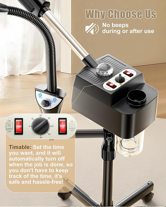 - No beeping sound: the facial steamer for esthetician has no beeping sound no matter in the heating process or the end of the work, there is no disturbing beeping sound, when the time is up, it will automatically end the work and stop heating, it will not disturb you or your customers immersed in the Spa.