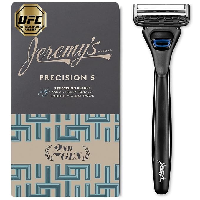 Jeremy's Razors for Men: Precision 5 Blade Razor - Stainless Blades, Lubricating Strip, Precision Trimmer - Men's Shaving Essentials Kit, Travel Shaver Face Body Head Shavers (1 Razor 1 Cartridge)